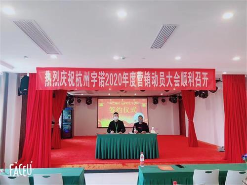 為保證公司2020年度經營目標的實現,建立完善的績效管理體系和激勵約束機制,強化企業執行力,提升核心競爭力,2020年3月19日,在宇諾多媒體會議中心成功舉行了《杭州宇諾電子科技有限公司2020年度目標責任書》的簽約儀式。出席簽約儀式的領導有公司董事長。常務副總、市場總監各營銷戰區負責人和全體在杭的市場銷售人員列席了簽約儀式。